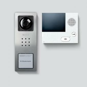 Video-Set Siedle Basic in Bus-Technik mit den Funktionen Rufen, Sprechen, Sehen und Tür öffnen.