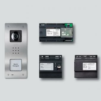 Starter-Set Smart Gateway für Unterputz in Bus-Technik mit den Funktionen Rufen, Sprechen, Sehen und Türöffnen.